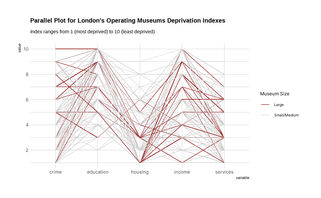 Are larger museums located in more developed neighborhoods?
